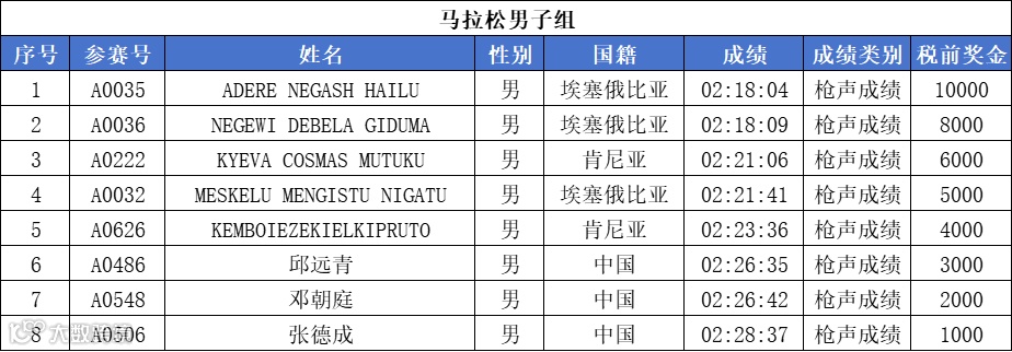 2024琼海博鳌马拉松已于12月22日圆满结束,根据竞赛规程,马拉松项目录取男子和女子前八名给予奖励,按照枪声成绩排名,奖励名单如下: