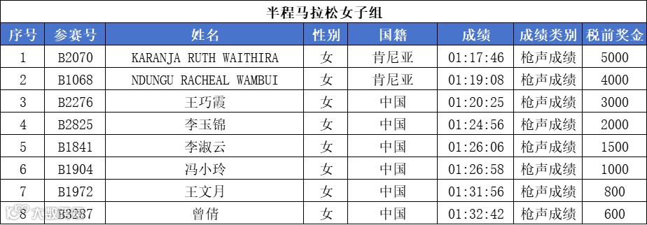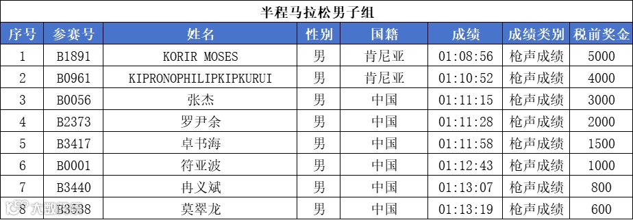 2024琼海博鳌马拉松已于12月22日圆满结束,根据竞赛规程,半程马拉松项目录取男子和女子前八名给予奖励,按照枪声成绩排名,奖励名单如下: