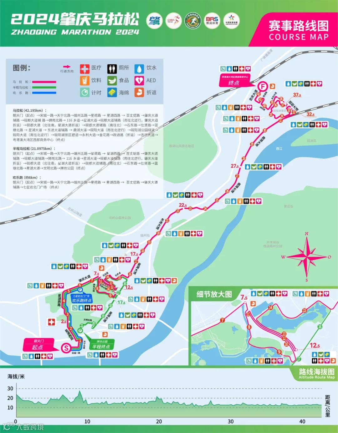 本次赛道延续了“现代城貌+山水风光”特色,途中串联起古城墙、七星岩景区、东湖公园、牌坊公园、鼎湖山景区、砚阳湖景区、粤港澳大湾区西部商务中心等地标。