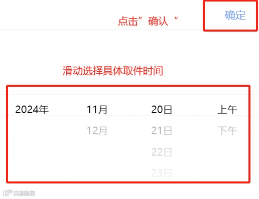 滑动选择具体的上门取件时间,选择完毕点击“确定”