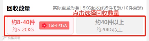 根据所捐赠物品数量,选择”约8-40件“或”约40件以上“