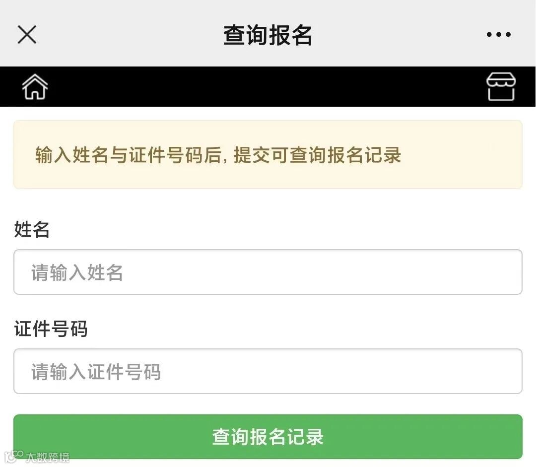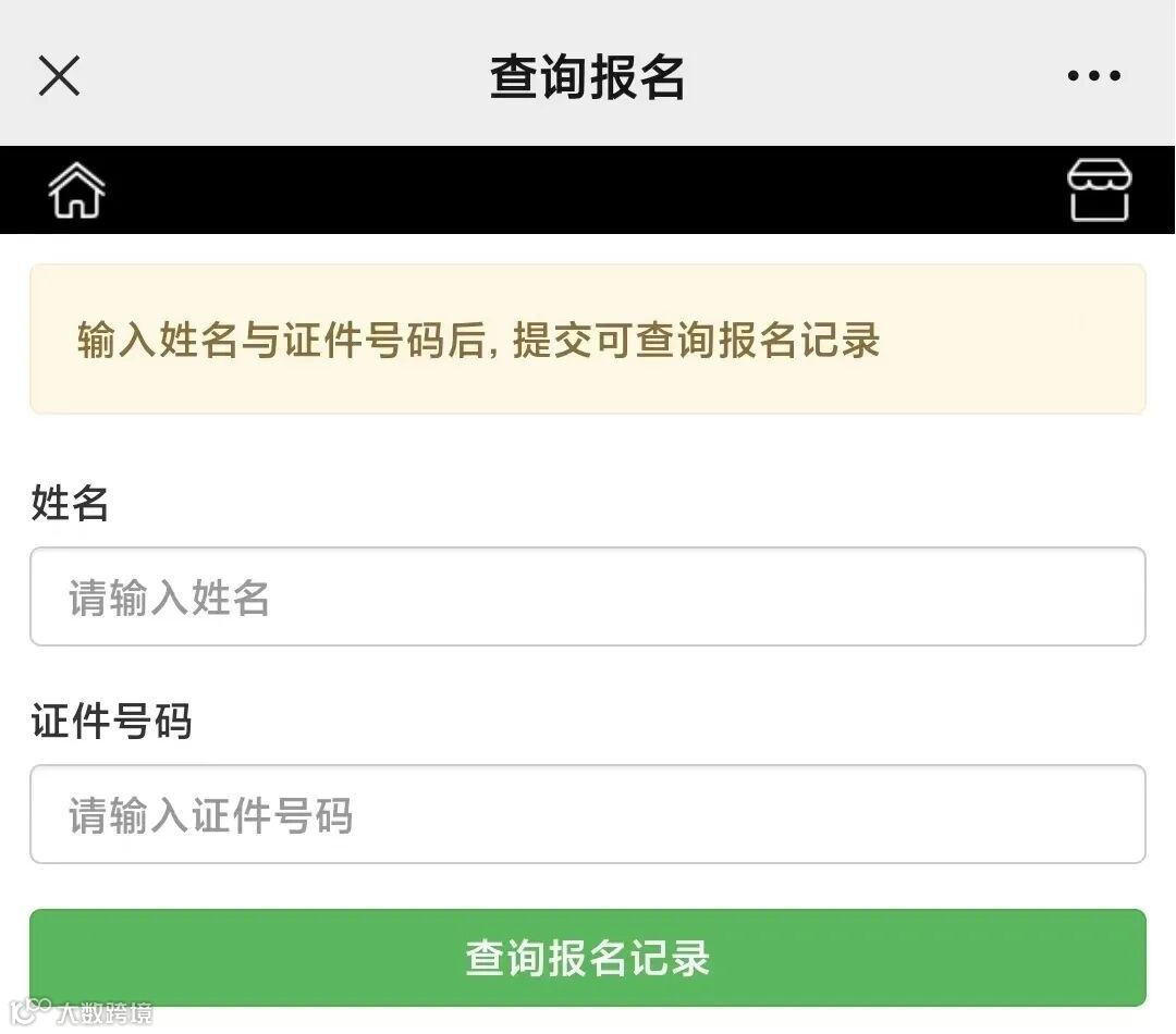 2.进入页面,填写姓名、证件号信息,点击查询报名记录。