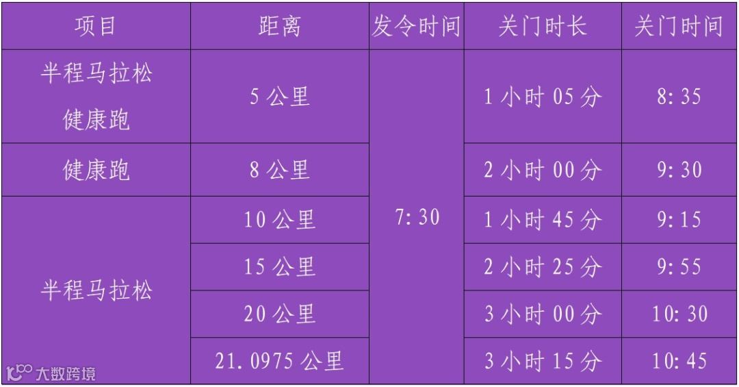 为了保证参赛选手比赛安全,限时对社会交通进行滚动封闭。比赛路线各段专设了赛时关门时间,到了关门时间,相应路段将恢复社会交通。在规定关门时间内,未跑完对应距离的参赛选手必须立即停止比赛,退出赛道,以免发生危险。退出比赛的选手可搭乘沿途的收容车抵达终点区域(不得通过终点)。