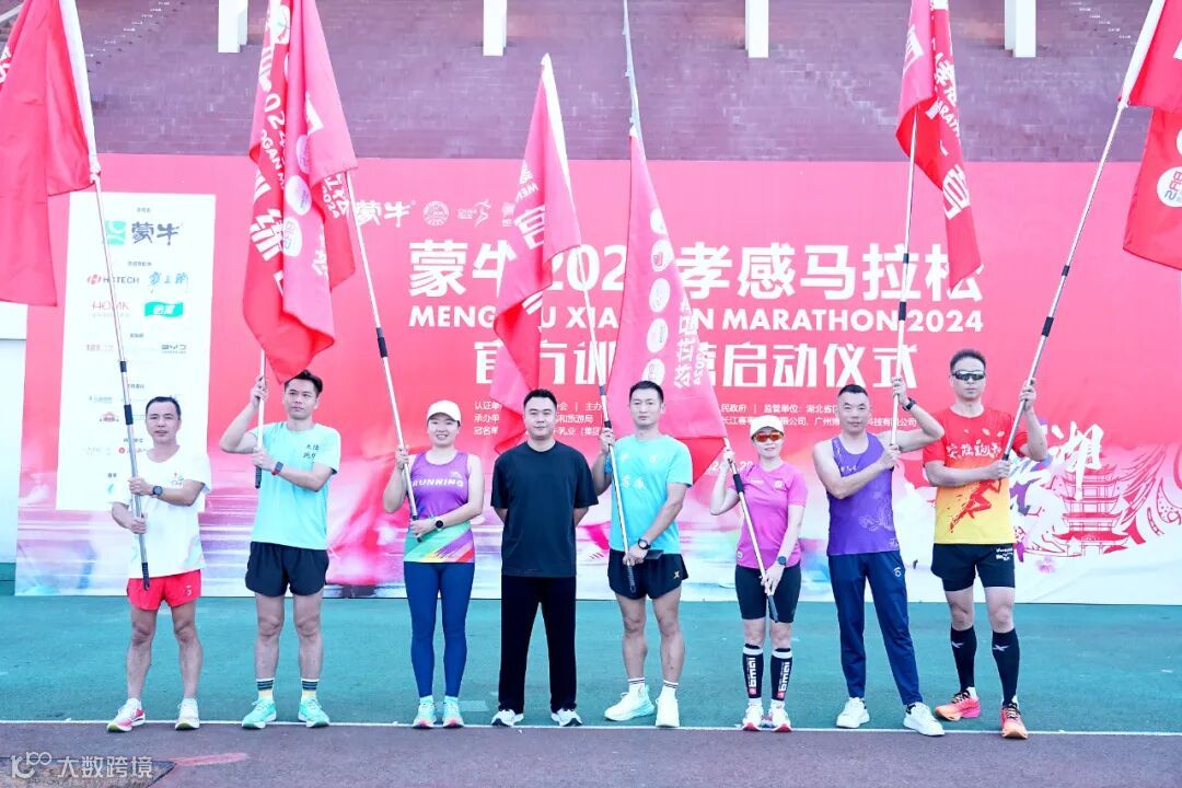 孝感市体育总会副秘书长周伦、广州博润体育科技有限公司赛事总监余立阳、孝感市马拉松长跑运动协会会长黄勇、蒙牛学生饮用奶(孝感)推广中心负责人朱辉及其他赞助商代表出席了启动仪式。