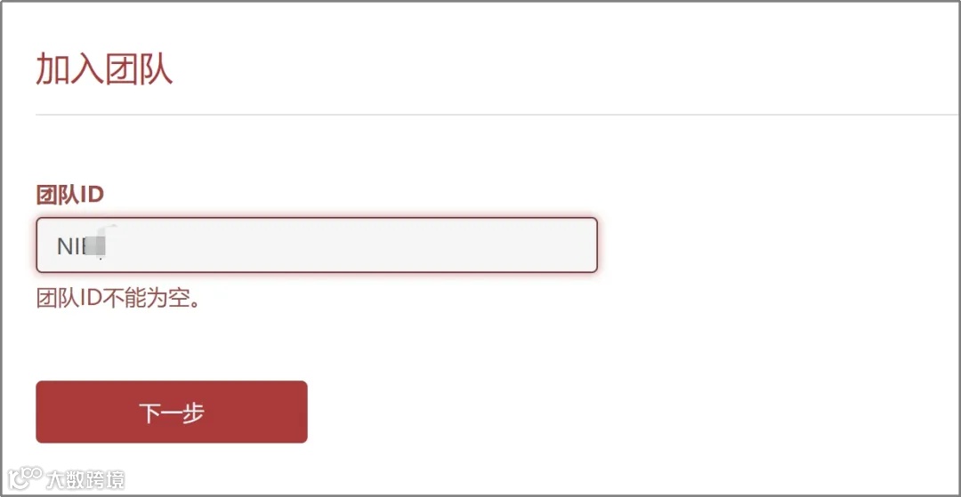 输入团队ID后,点击下一步(注意输入的ID不能有空格)。