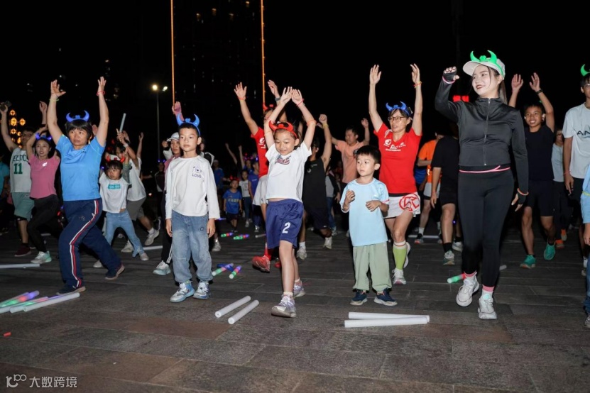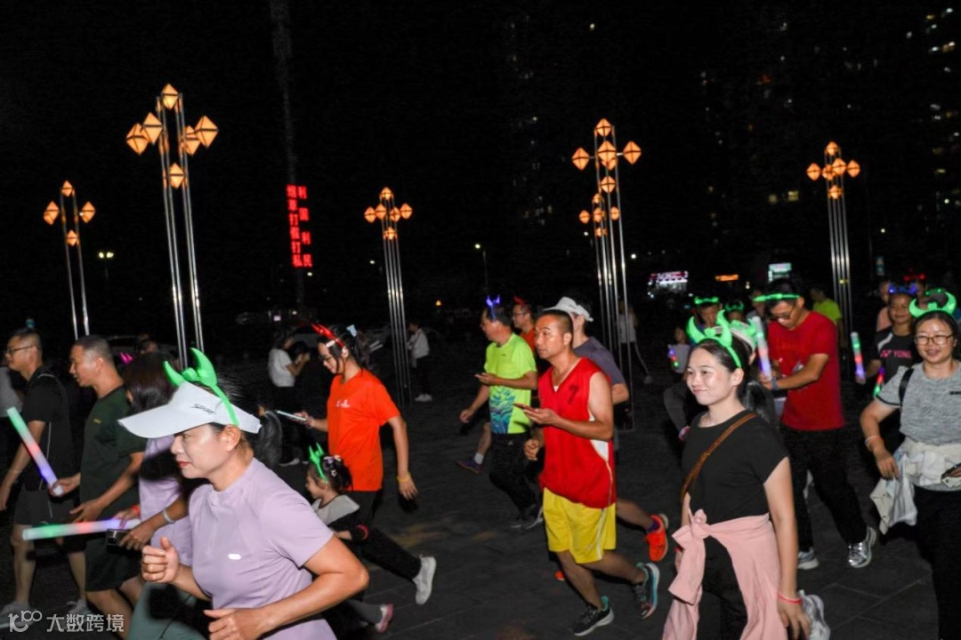 随后,跑友们在瑶佳人教练的带领下进行了充分的热身运动,为接下来的荧光夜跑做好准备。