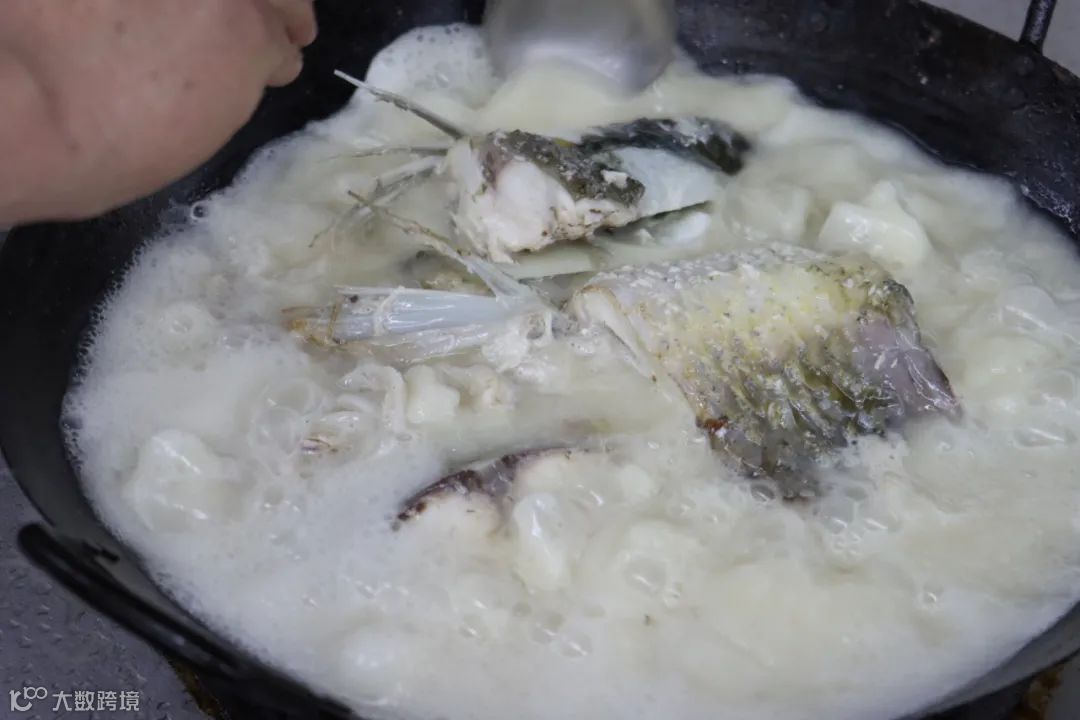 一锅飘着浓香的奶白色汤汁沸沸腾腾,