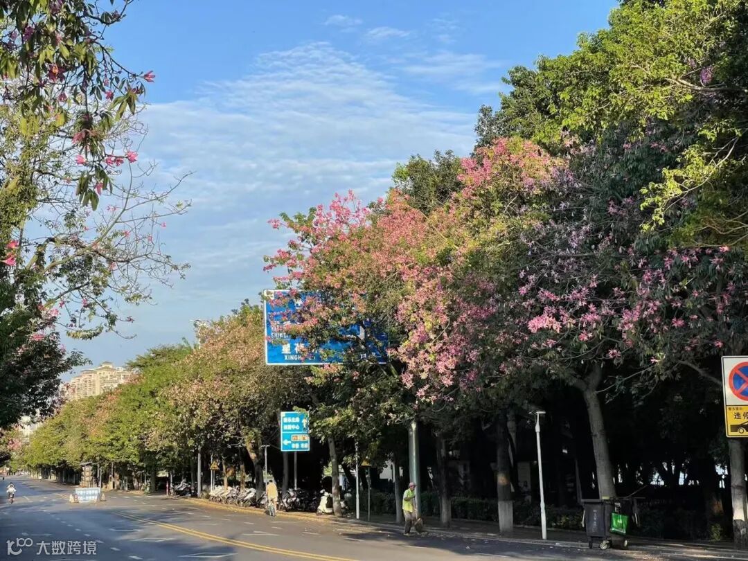 一团团、一簇簇的美丽异木棉竞相绽放,