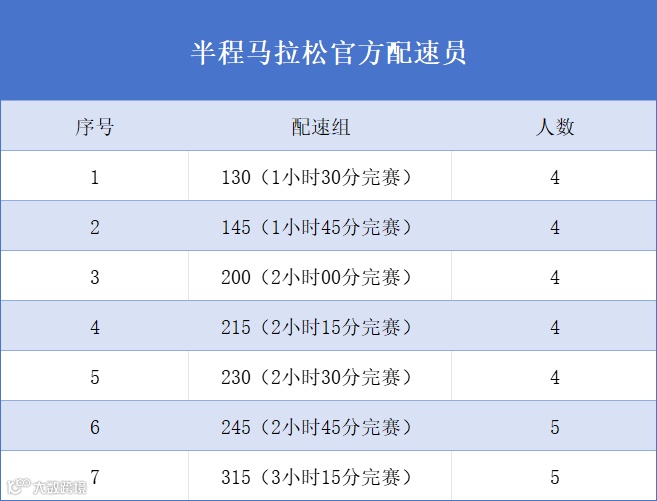 招募半程马拉松官方配速员30人,具体配速分配如下: