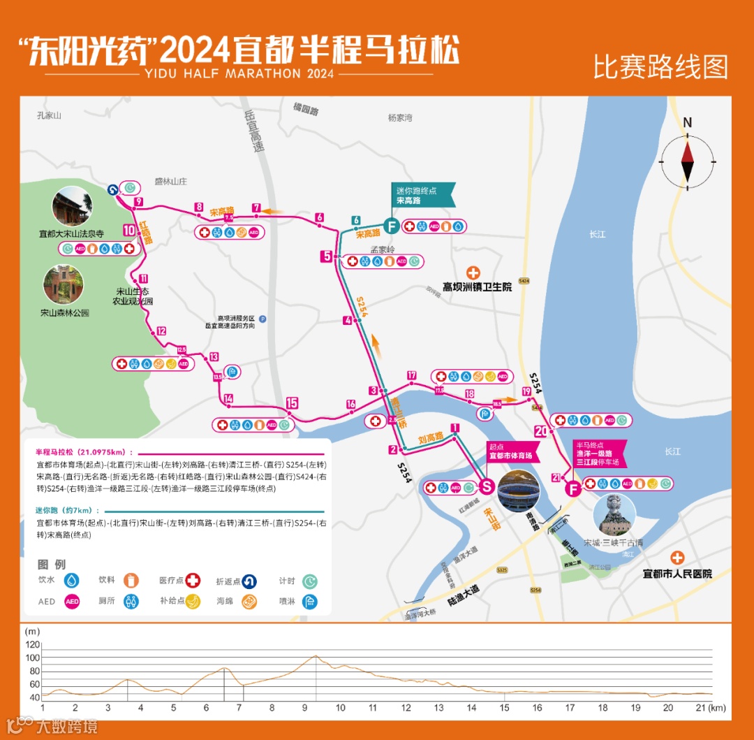 本段赛道将通过424省道和254省道,整个路面较为平缓,没有明显的上下陡坡。半马终点附近有三峡千古情景区和鲟龙水街,三峡千古情景区融合探险、演艺、沉浸、穿越等多元风格,满足家庭游、亲子游、闺蜜游、毕业游等多元需求;鲟龙水街,以世界级国风古建筑群和三峡千古情的强力加持,展现三千年巴楚文化风采。跑友们在比赛结束后,也可以去景点里面游玩一番~