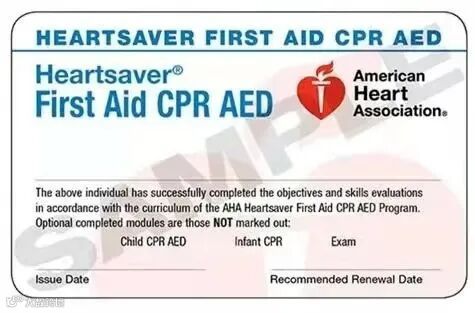 AHA在所有课程中大力推广知识和技能,并为此开发了教学材料。在教学过程中使用这些材料并不代表受到AHA的课程赞助,除了AHA课程材料所需的部分费用外,此类课程所收取的任何费用均不代表AHA的收入。考证合格后可以加入急救跑者。