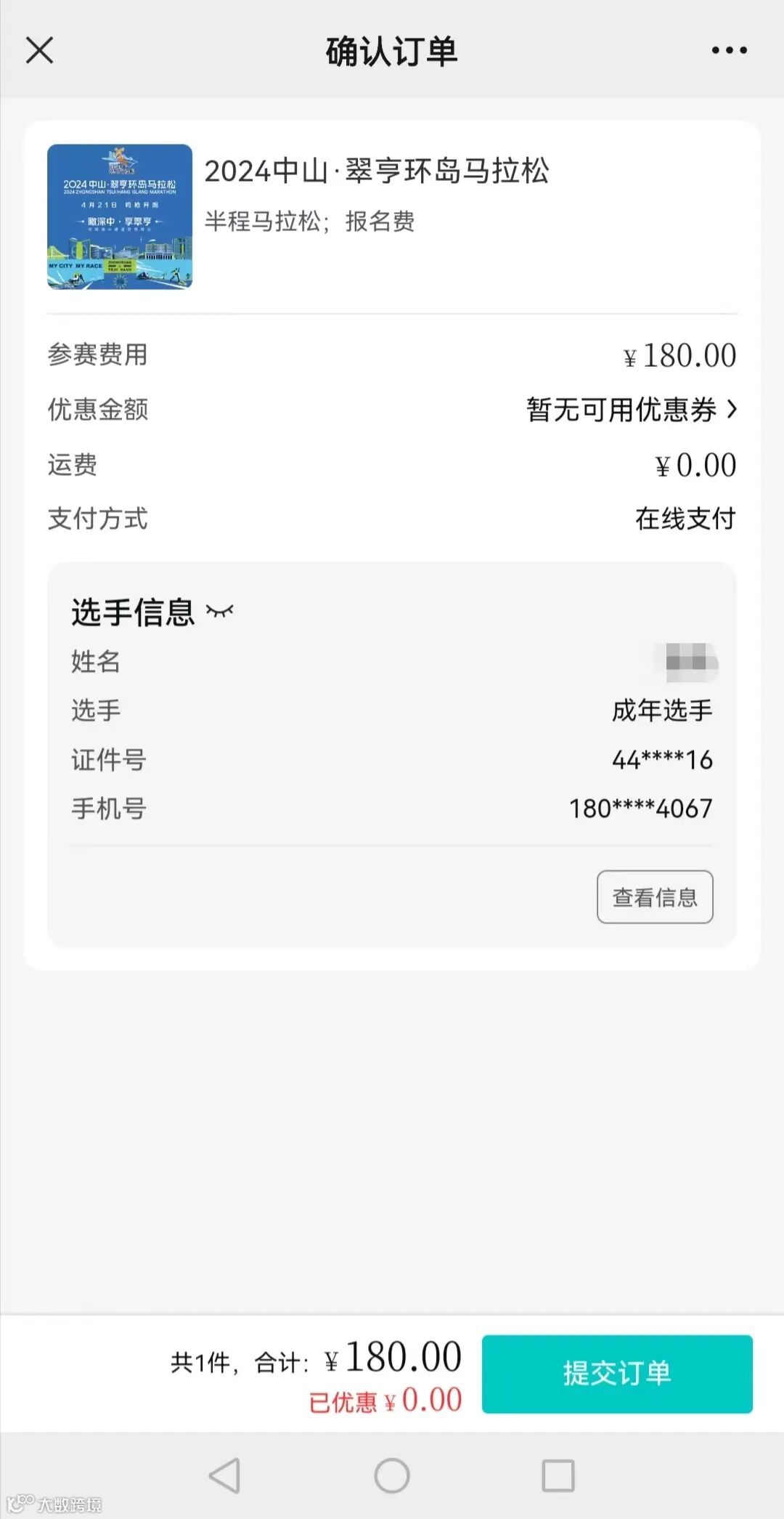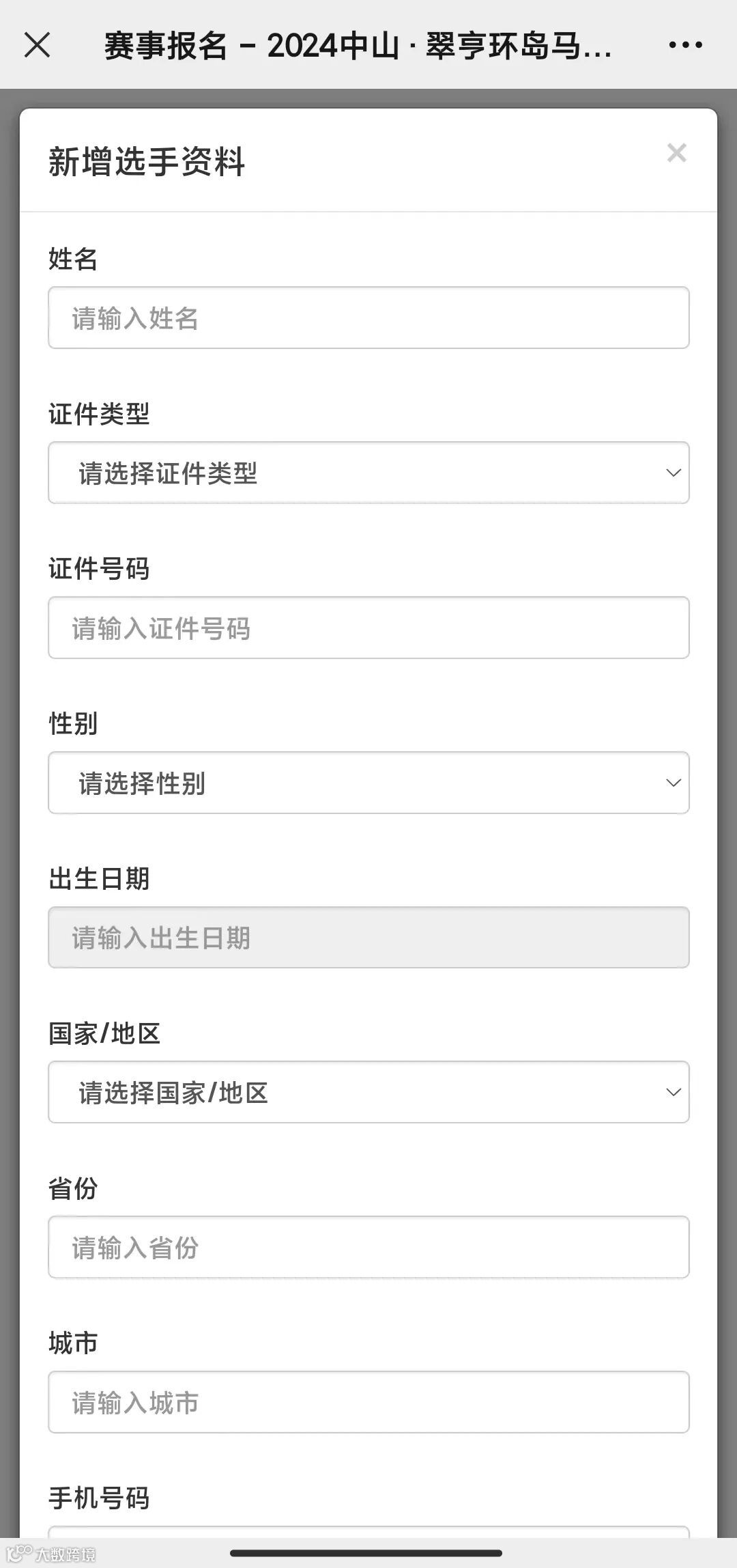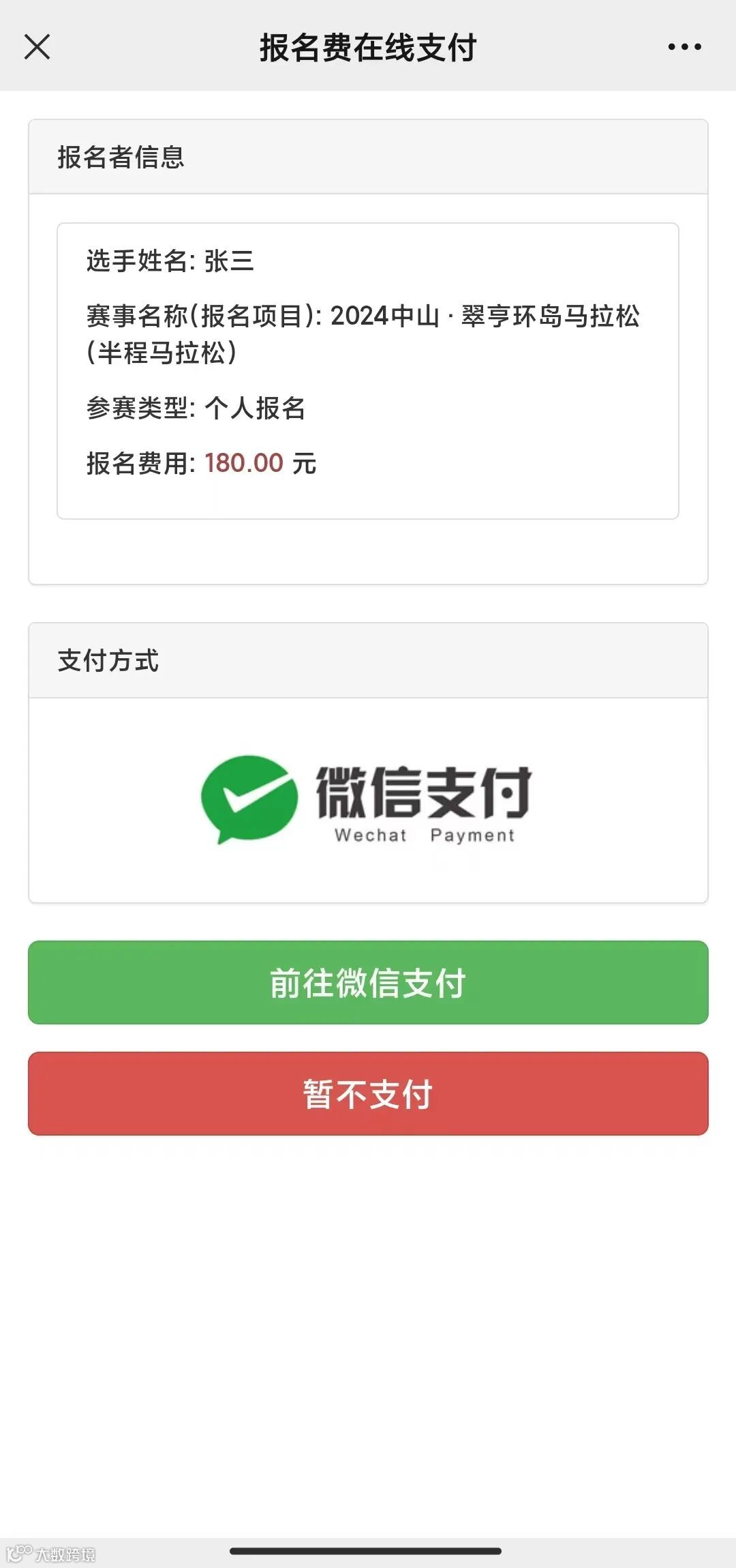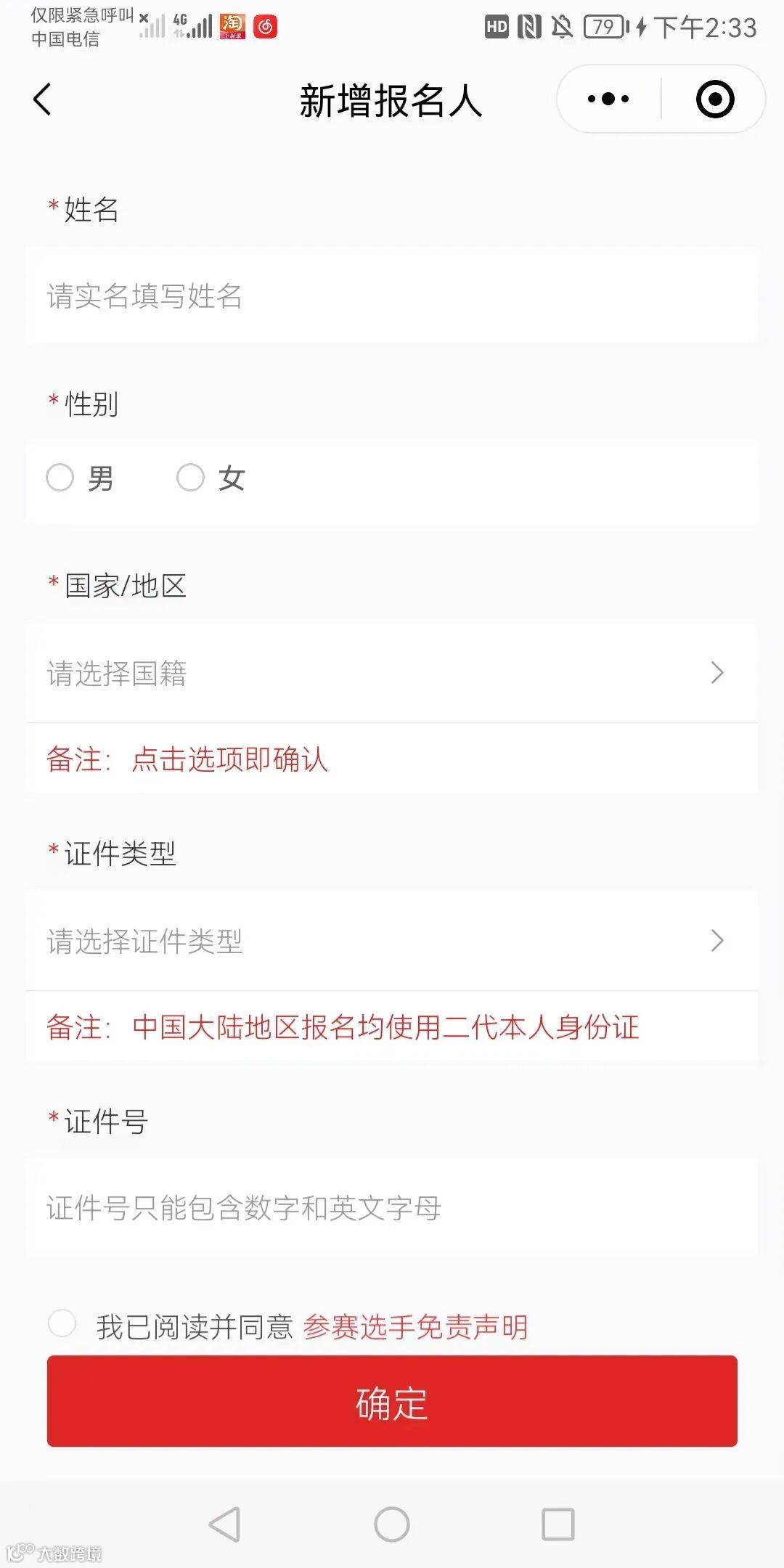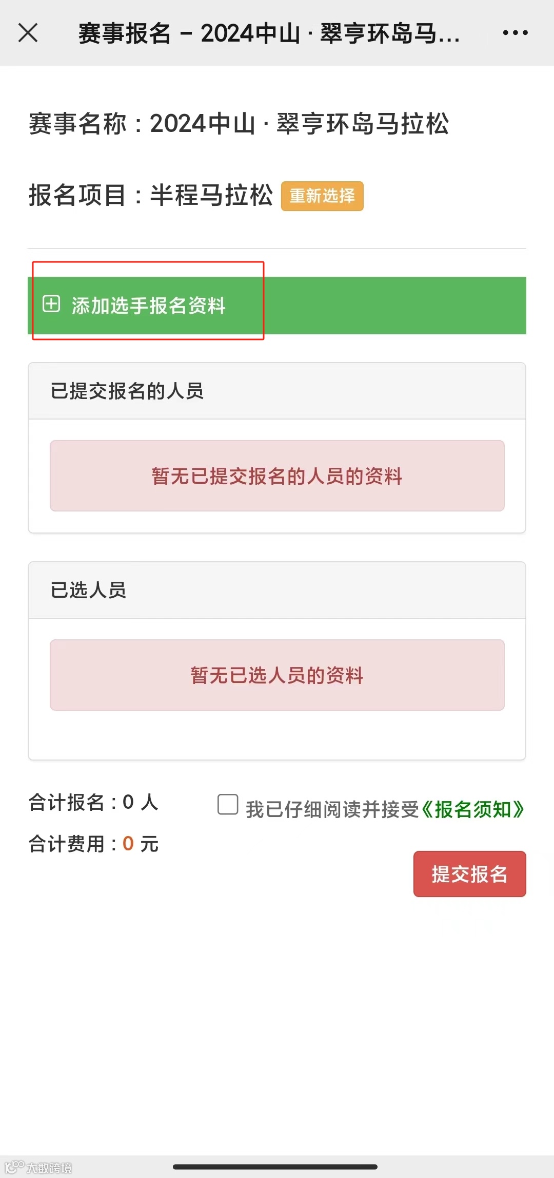 赛事官方系统报名示例