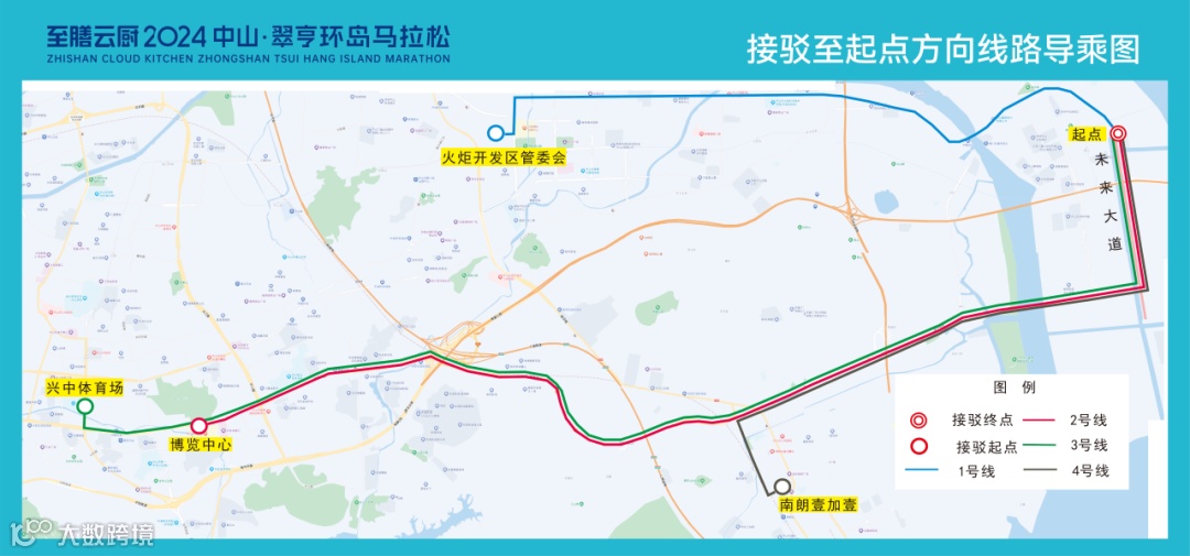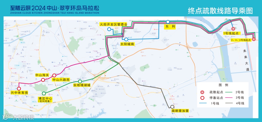 ●兴中体育场:兴中道→博爱路→翠亨快线→兴湾路→未来大道;