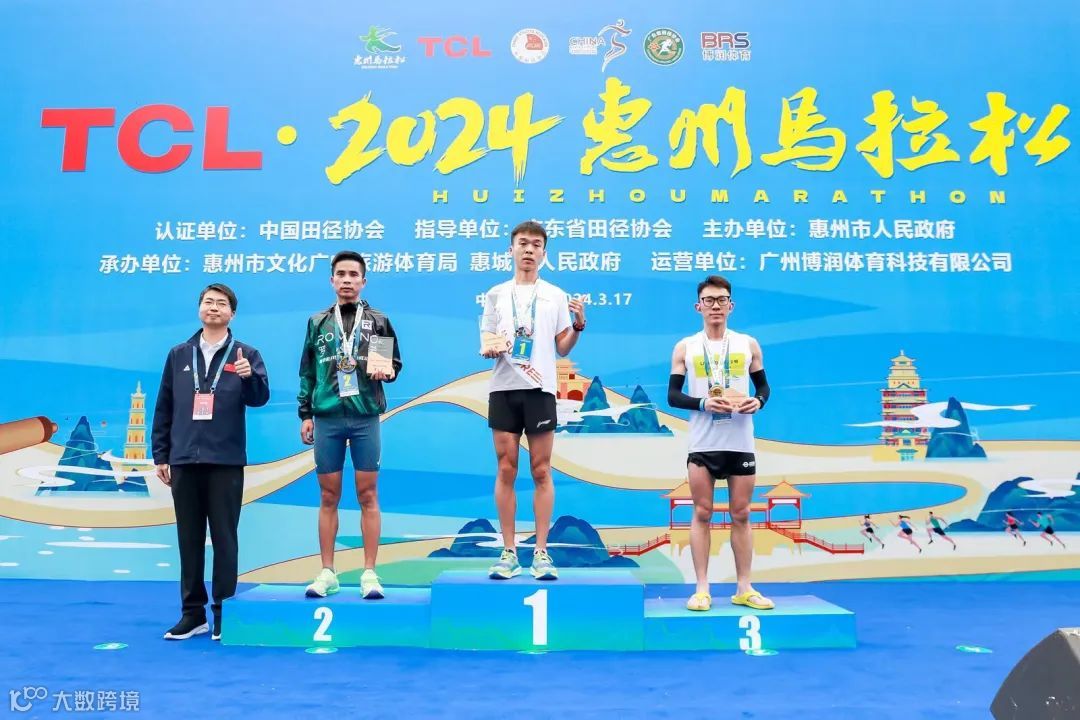 马拉松项目方面,刚刚完成冬训归来的惠州本地选手、“广东一哥”陈华威再次展示出超强的实力,以2小时19分25秒的成绩获得男子组冠军,来自肯尼亚的LETANTO STEPHEN KIMBOMET以2小时22分51秒的成绩夺得亚军,季军同样被本土作战的惠州名将朱振浩获得,成绩为2小时30分31秒。
