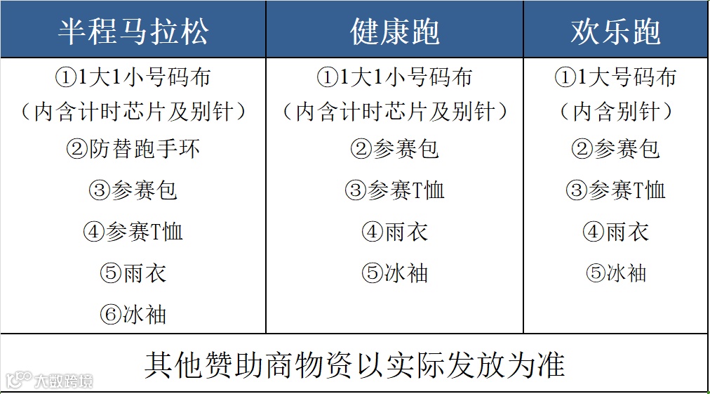 (注:代领、团队领取领可能会出现替跑、误领、物品不能及时给到本人的情况;由于赛程时间紧张,赛前寄件过程会出现各种情况,如快递丢失等;博览会领物现场需要进行芯片检测,半程马拉松、健康跑选手需佩戴防替跑手环,如选手未到现场,无法操作。)