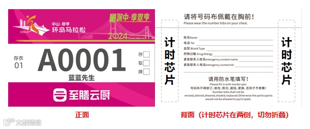 1、请参赛选手在赛前如实填写完整号码布背面信息;