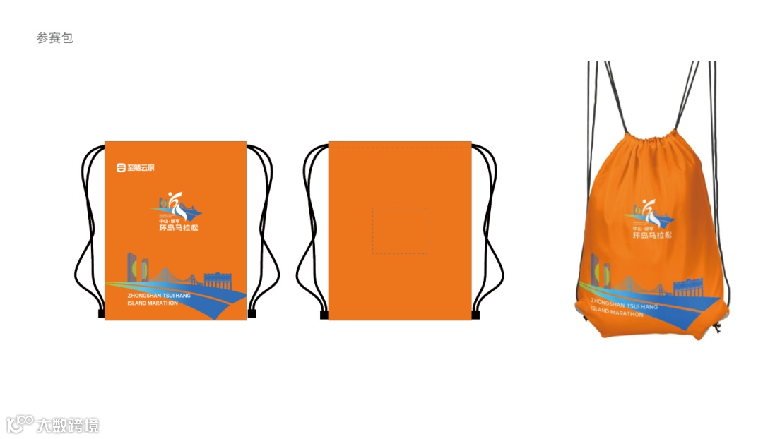 参赛包整体色调选用鲜亮的橙色,服装正面与赛事logo一脉相承,除了赛事logo及至膳云厨的品牌logo以外,也将未来之门、深中通道、孙中山故居的建筑形象线条化处理点缀其中,展现中山翠亨的历史文化底蕴以及未来发展的新兴趋势。