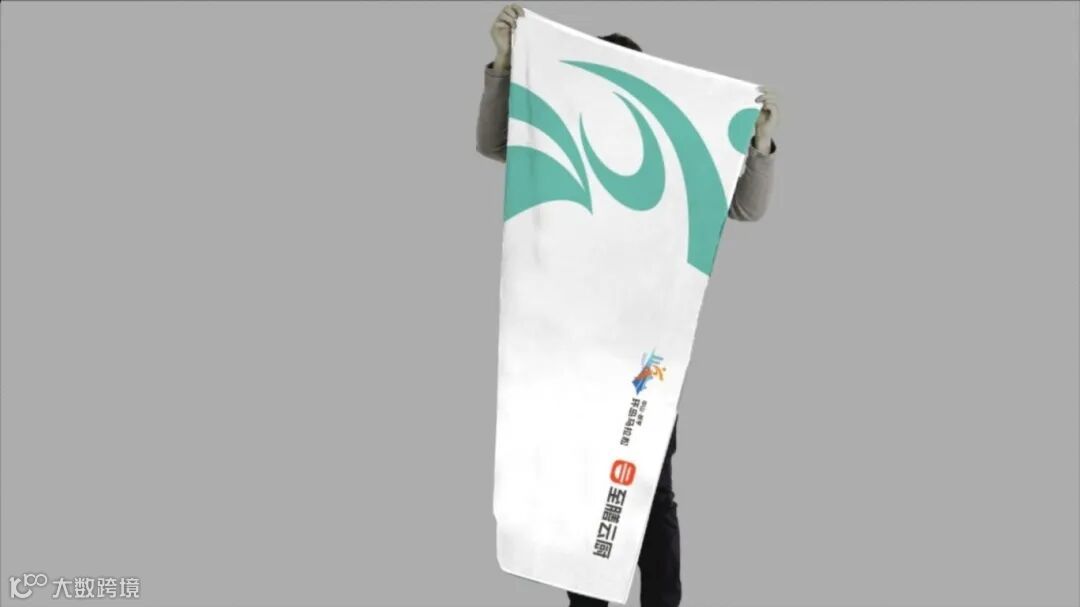 参赛毛巾在白色的底色基础上,左半部分设计选用了赛事logo中“人”的奔跑之姿,以翠色为主色调。这个奔跑的跑者是由翠亨的“亨”化用而来,代表着“奔跑的翠亨”形象,也象征着翠亨新区奔向未来的腾飞之势。