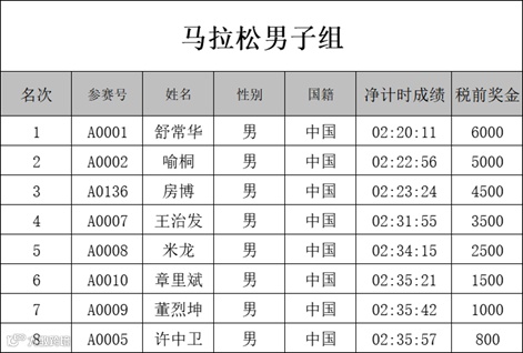 凡参加本次比赛马拉松项目的中国籍选手