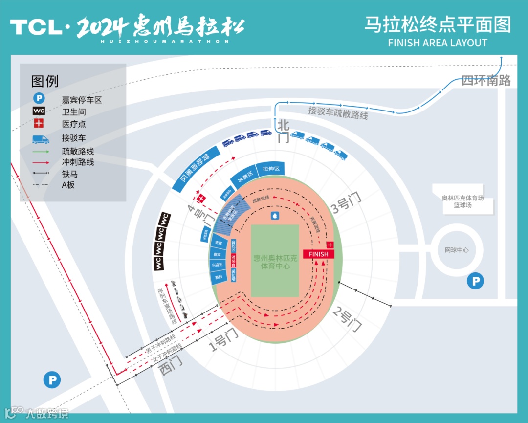 4.马拉松选手在比赛当日14:30前(半程马拉松选手在比赛当日11:30前)到各自终点指定区域领取个人存放物品。
