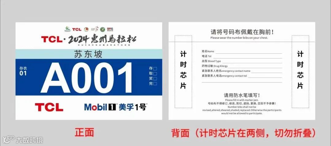 1.请参赛选手在赛前如实填写完整号码布背面信息。