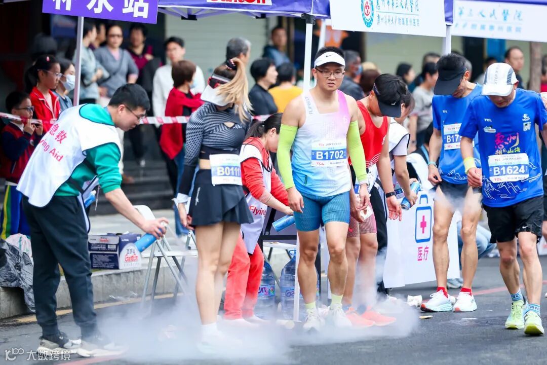“选手们,请往这边走!”“辛苦了!”“这是属于你们的奖牌和奖品!”离马拉松完赛通道还有30米,就听到志愿者们热情地引导每一位选手来到完赛区,为选手鼓掌,并为选手们挂上奖牌、送上补给物资。