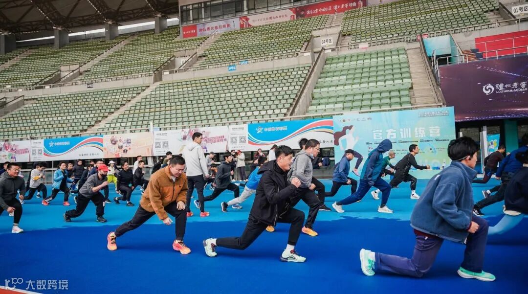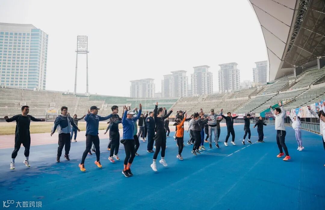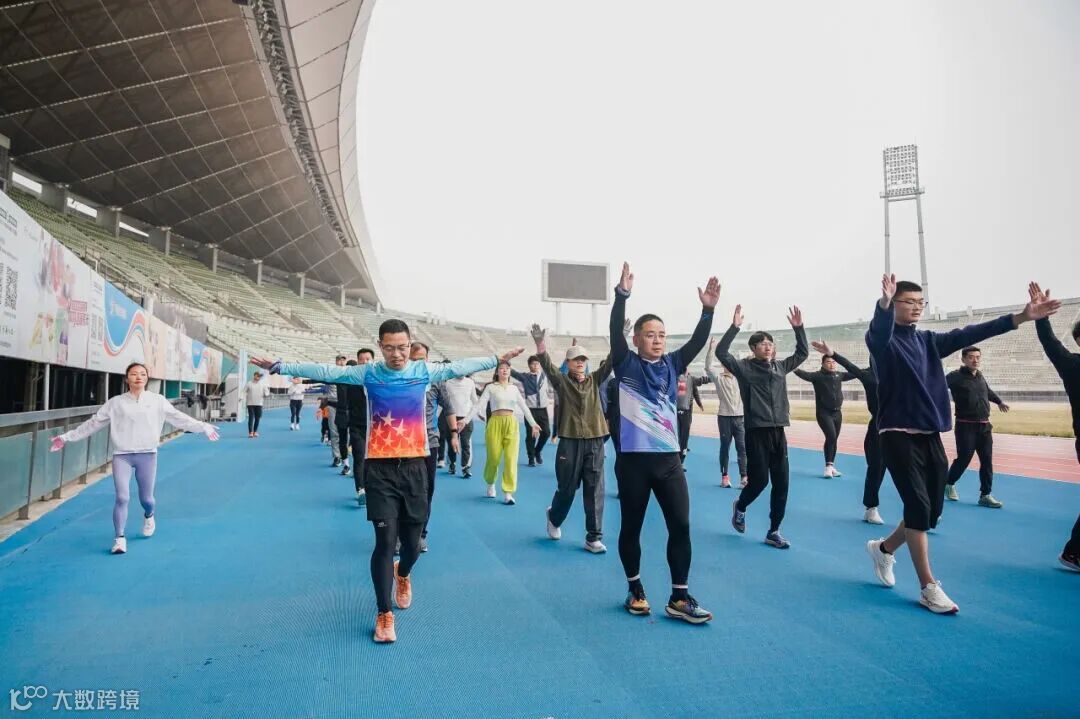 开始,伴随着动感的音乐,姚来宝教练带领大家进行热身运动,跑友们的活力与激情瞬间点燃了现场的训练氛围。