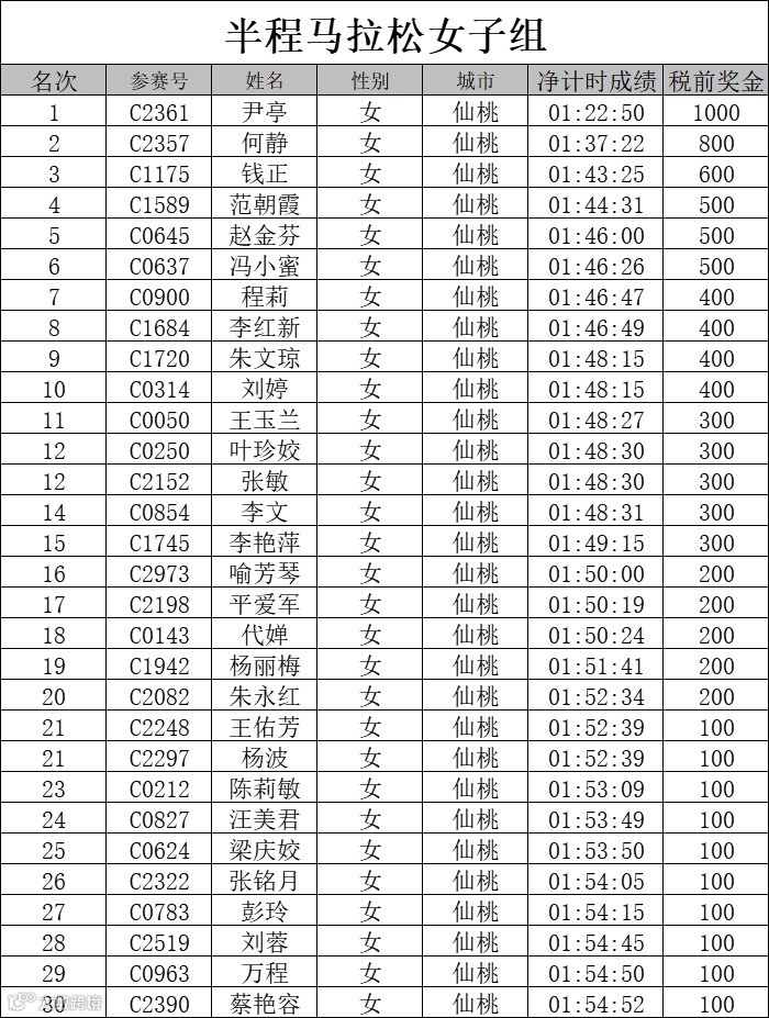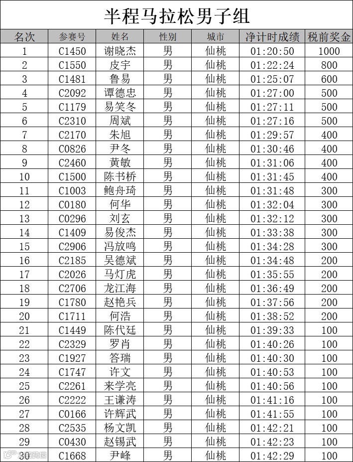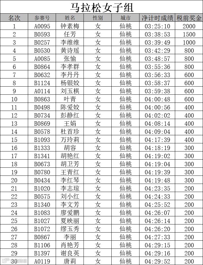 上述奖金将按照本次赛事竞赛规程规定,征收20%个人所得税,由仙桃马拉松组委会代收代缴。