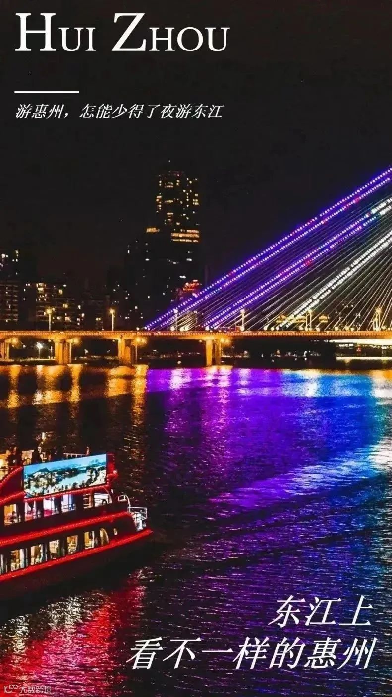 惠州的自然之美不仅在白天的山、湖、海,惠州夜景也有着别样的魅力风采,想要感受不一样的惠州,不妨来体验东江夜游,欣赏东江两岸夜景,品味惠州繁华。