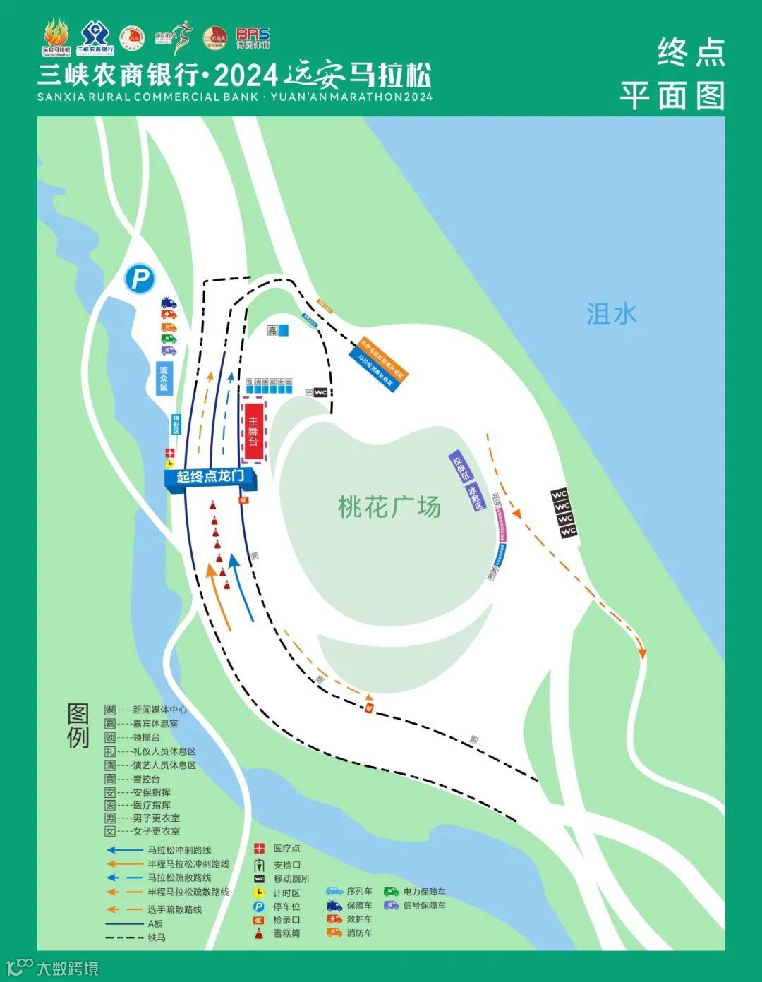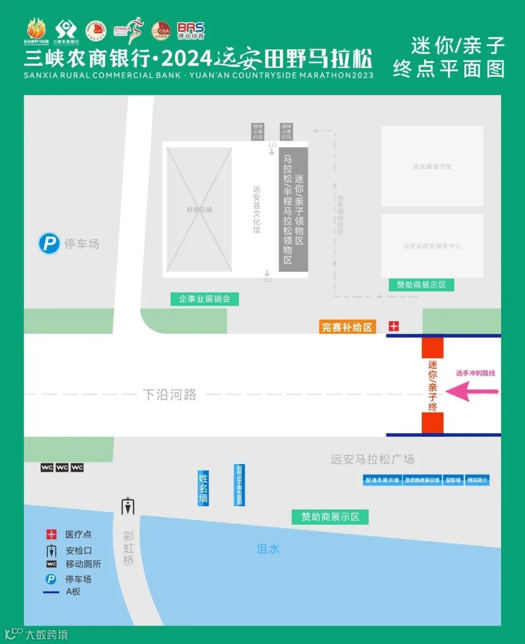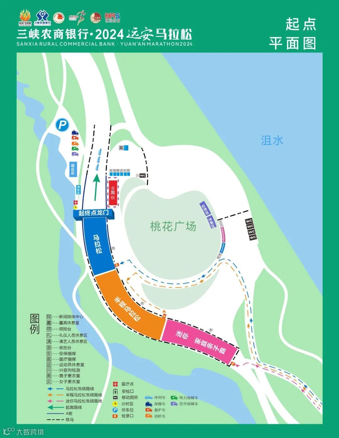 蓝色为全程马拉松集结区,橙色为半程马拉松集结区,粉色为迷你马拉松和家庭亲子跑集结区,跑友请按区域集结,跨区集结出发属违规行为,以免被取消成绩。