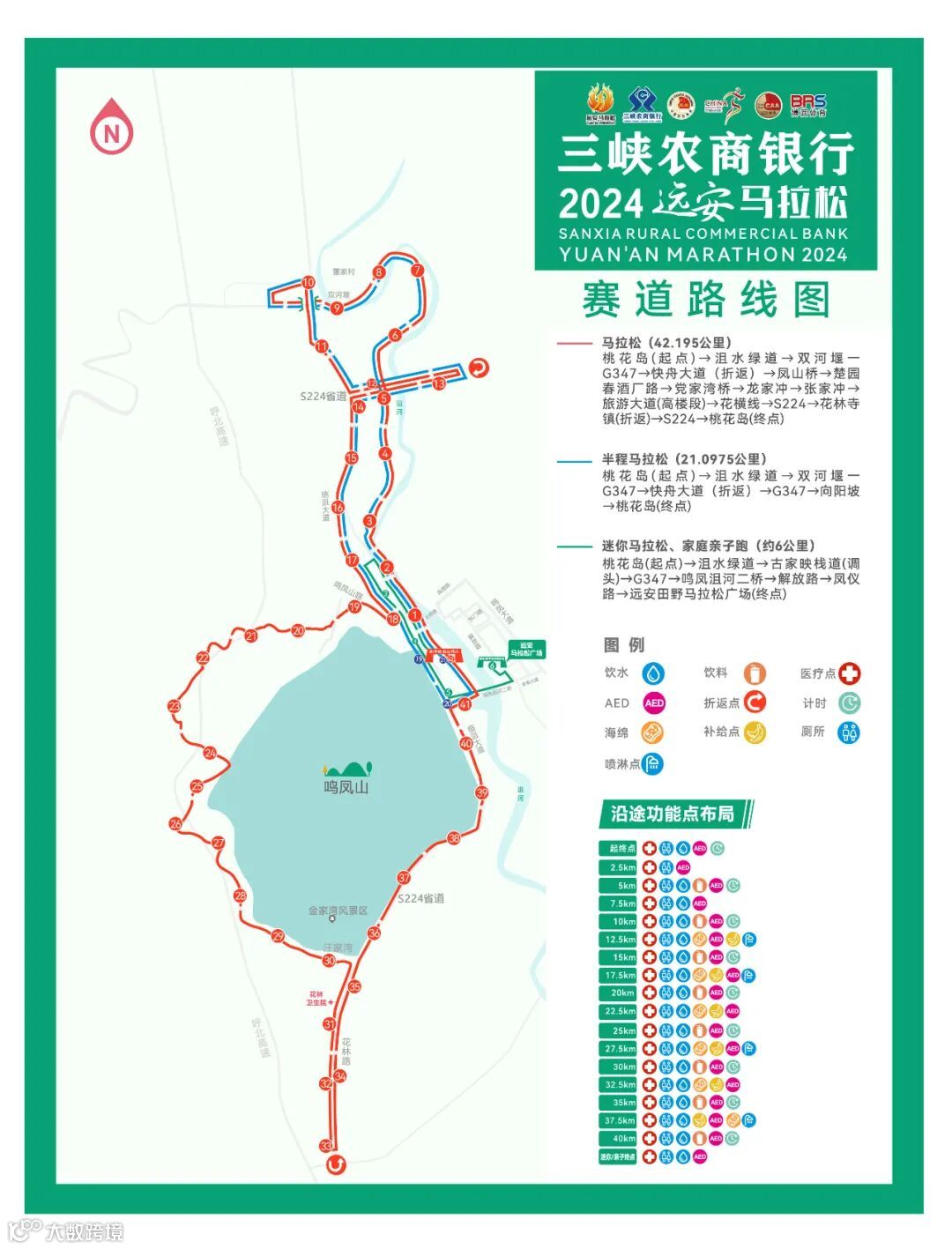 桃花岛(起点)→沮水绿道→古家映栈道(调头)→G347→鸣凤沮河二桥→解放路→凤仪路→远安田野马拉松广场(终点)