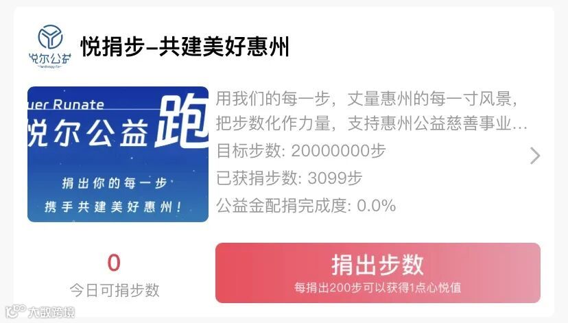 3.进入“悦捐步”功能页面参与