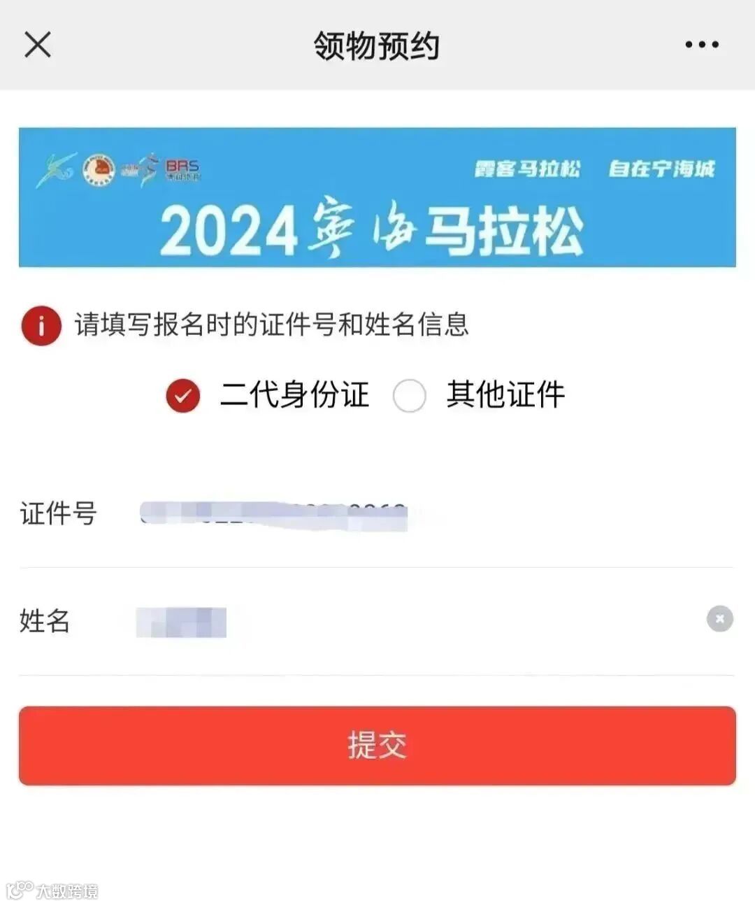 *本次领物采取分时预约的方式,请选手进入宁海马拉松微信公众号-》点击最下方参赛声明-》点击预约时段-》输入证件号和姓名-》选择预约时段提交。请选手错峰出行,避开人流。