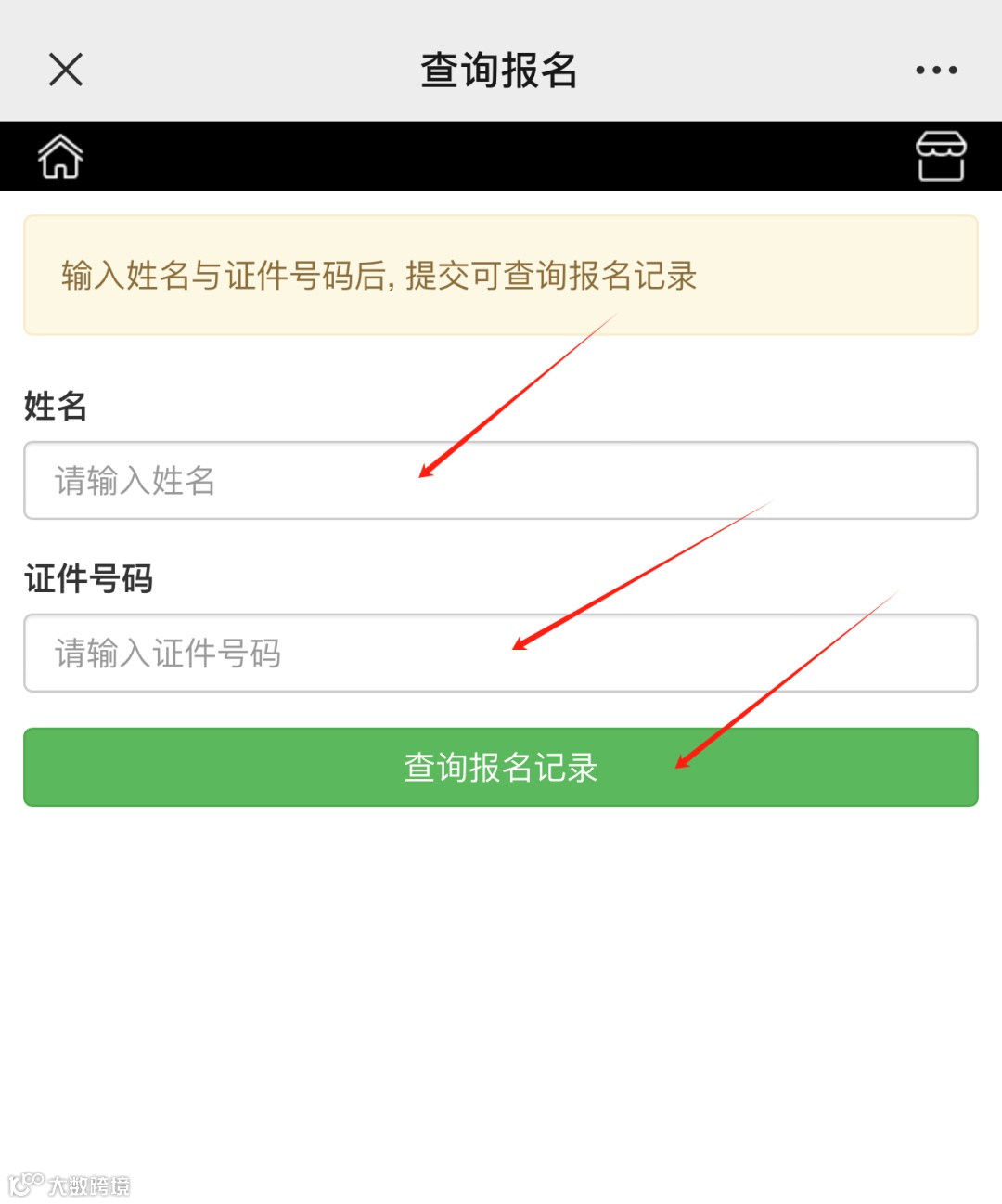 步骤二:进入页面,填写姓名、身份证号,点击查询报名记录