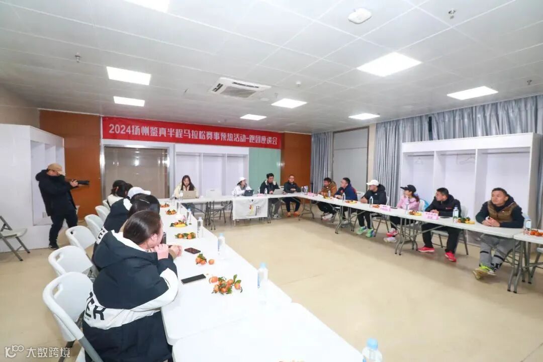 试跑结束后,扬州跑步俱乐部、扬州野狗战队、扬州女神战队、镇江文旅奥林匹克队、天长砼砼跑团等各跑团代表及赛事相关工作人员共同在“扬马”组委会开展2024“扬马”跑团座谈会。