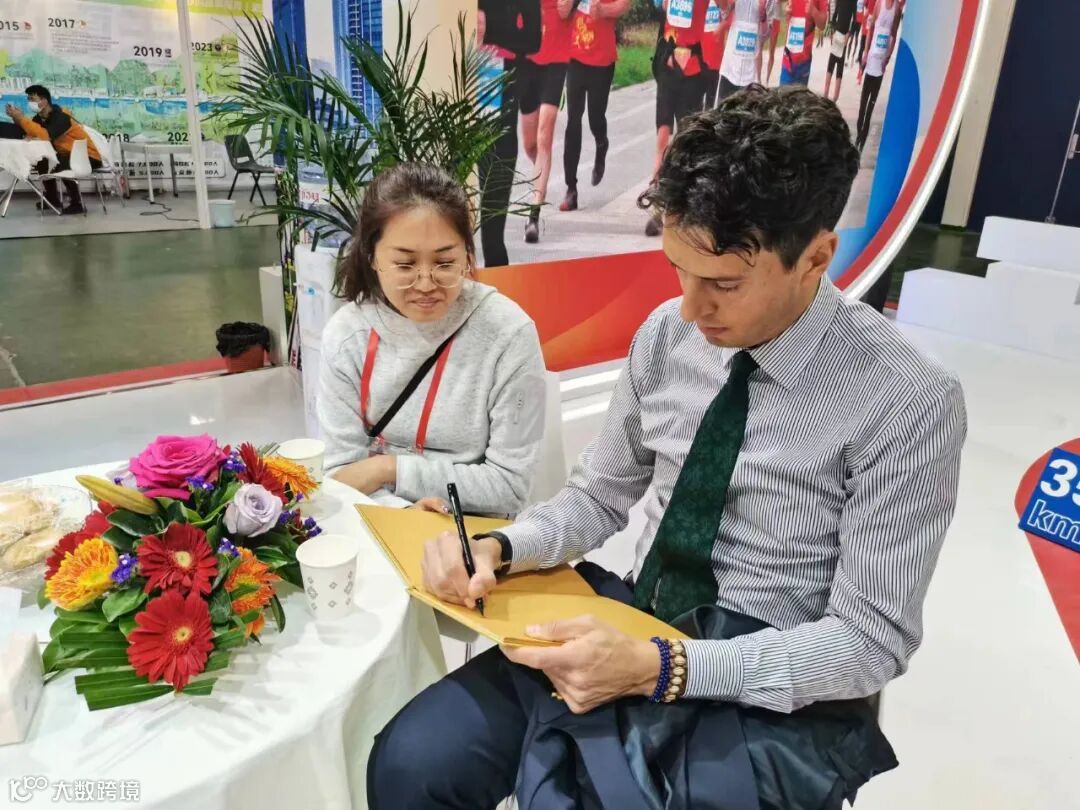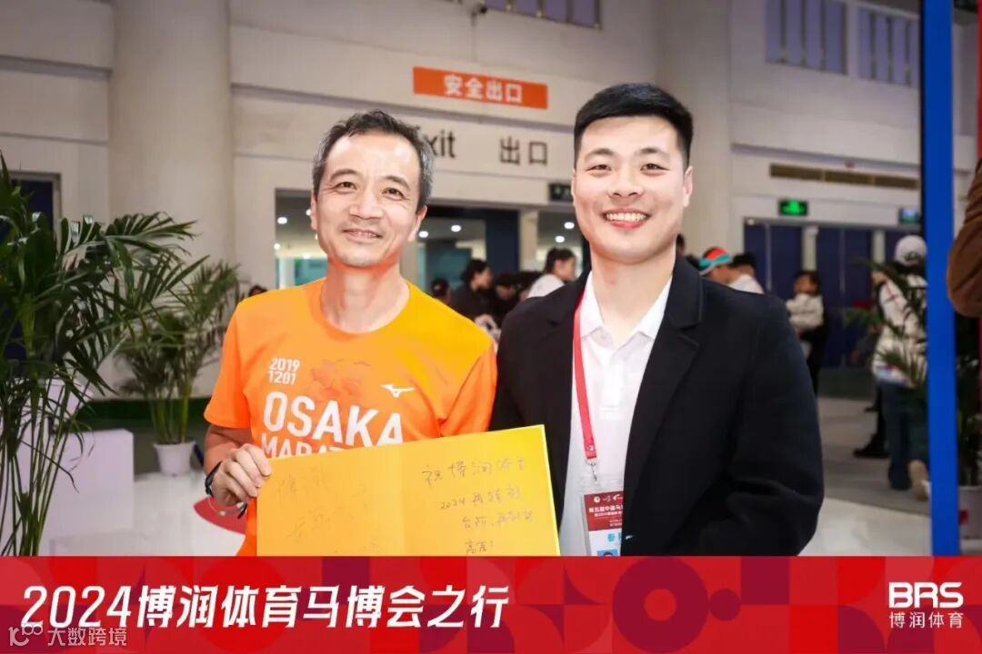 知名马拉松选手管油胜到访博润体育展区并在留言簿上留言