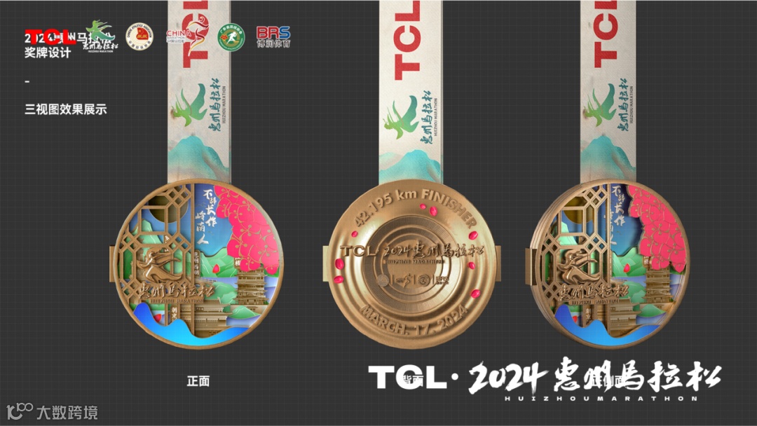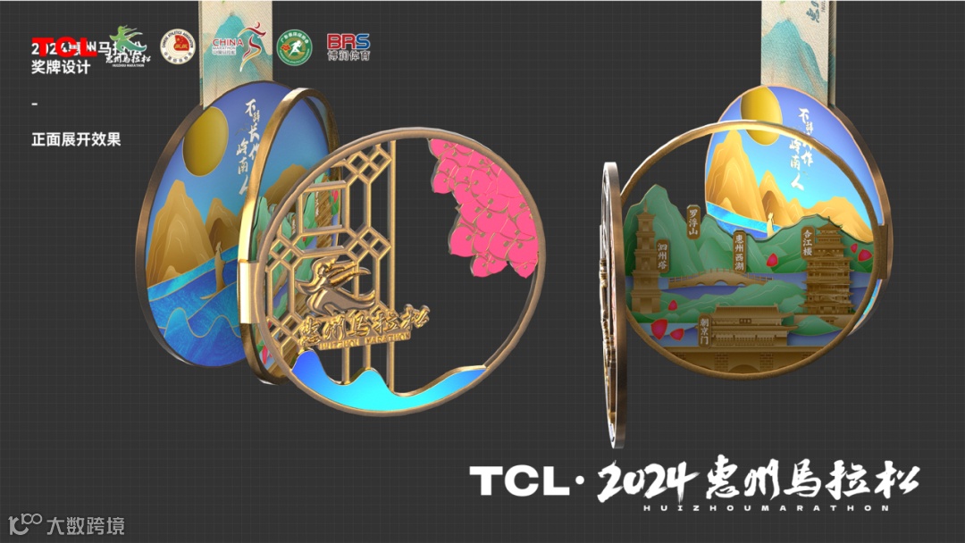 赛事logo设计以身着宋制服饰跑步的“东坡”为形象,汉字“惠州马拉松”则是选自东坡留存下来的墨宝;赛事服饰分为男女两款,分别选用水蓝和玫红配色,服装正面有“惠州·相见山海”字样,背面则用东坡先生名句“罗浮山下四时春”和“不辞长作岭南人”遥相呼应,点题惠州;奖牌设计上,把美景、地标建筑、市花簕杜鹃三大元素有机结合,“惠”聚山海画卷之美……