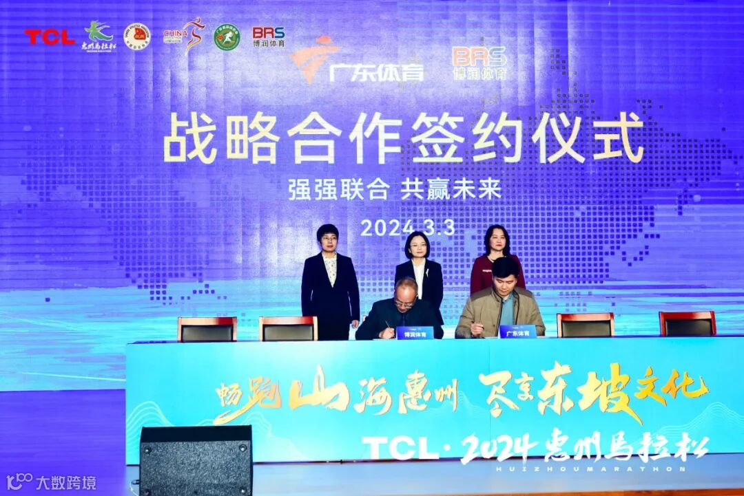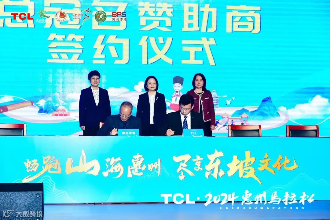 3月3日,TCL·2024惠州马拉松新闻发布会暨赞助商签约仪式在惠州举行,正式公布赛事LOGO标识、完赛奖牌、参赛包、参赛服等,介绍了赛事筹备进展及赛事特色亮点等多项内容,并与赛事赞助商企业举行签约仪式。