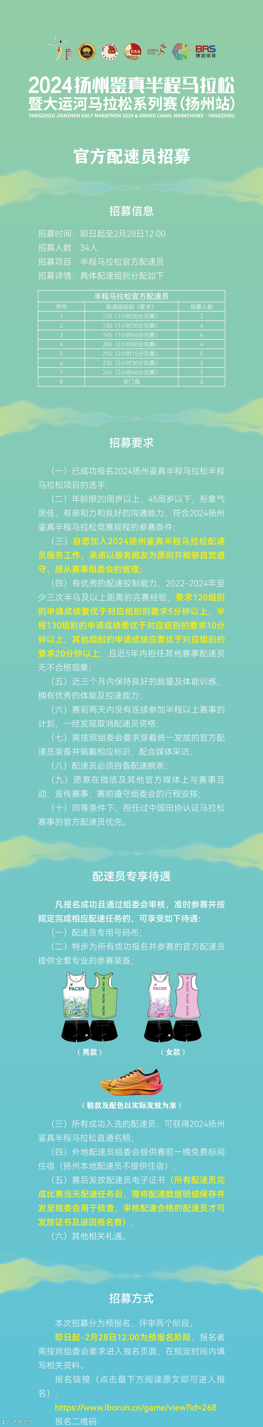 官方配速员招募 | 2024“扬马”等你领跑→