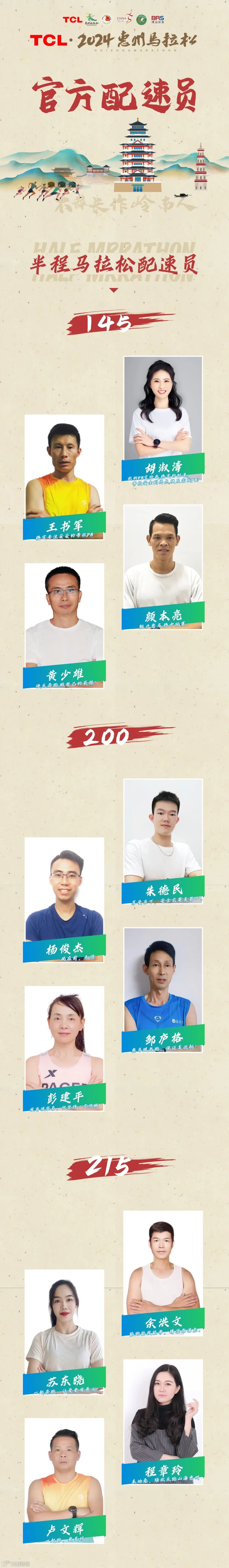 TCL·2024惠州马拉松官方配速员公布,锁定他们,实现PB!