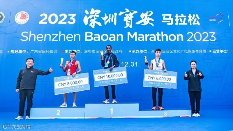 深圳市人民政府党组成员、副市长、宝安区委书记王守睿,中国田径协会副主席、广东省田径协会主席刘小青,深圳市人民政府副秘书长刘昂,深圳市文化广电旅游体育局党组书记、局长曾相莱,深圳市宝安区委副书记、区长王立德,宝安区委常委、宣传部部长周学良,宝安区委常委、区委区府办主任古子熔,宝安区人大常委会副主任毛伍元,宝安区人民政府副区长练聪,宝安区政协党组副书记、副主席李献荣,宝安区文化广电旅游体育局党组书记、局长冯颖霞,宝安本土运动员、杭州第19届亚运会赛艇项目冠军倪旭林,宝安本土运动员、杭州第19届亚运会三级跳项目亚军曾蕊,广州博润体育科技有限公司总裁易伟新等领导嘉宾出席起跑仪式并为赛事发令。