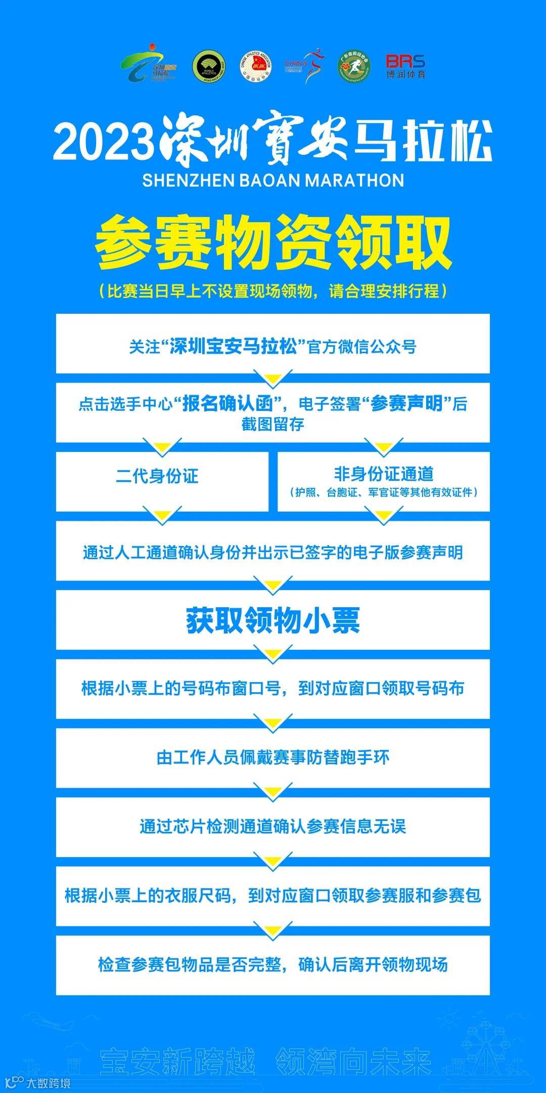 信息确认 → 领取号码布→由工作人员佩戴防替跑手环