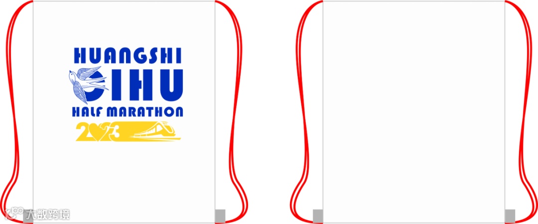 参赛包正面印有2023黄石磁湖半程马拉松英文设计延伸画面,极具辨识度,也让参赛包拥有了更高的纪念价值。