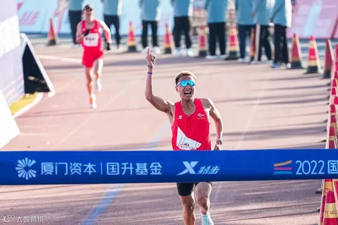 肖丽教练知道后,就跟他说:“要不,你尝试一下马拉松吧,马拉松运动员的运动生涯更长,趁着年轻换项,或许有些冒险,但这个险值得冒!”2019年3月24日上午,在徐州马拉松上,染着红发的彭建华,成为继多布杰和董国建之后,第三个冲过终点线的选手,成绩2小时13分26秒。这是彭建华的首马,也是他用鲜血染红跑鞋的一场马拉松。
