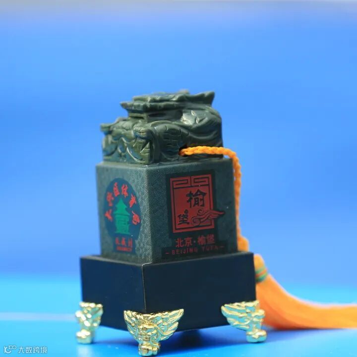 印章采用名贵的和田青玉优质材料,重900克加工制作,尺寸为6×6×6(龙头以下部分)公分,寓意六六大顺,以及对组织者和参赛者的称赞和赞赏,总高度加上龙头部分为10公分,寓意“河马”赛事十分圆满成功举办。