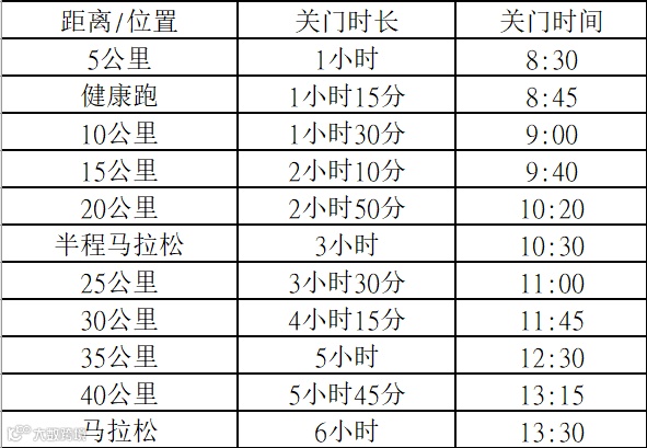 为保证参赛选手比赛安全,限时对社会交通进行滚动封闭。比赛路线各段专设了关门时间,到达关门时间,相应公里点的计时毯停止工作,相应路段将恢复社会交通。在规定关门时间内,未跑完对应距离的参赛选手须立即停止比赛,退出赛道,以免发生危险。退出比赛的选手可乘坐收容车到相应项目的终点处。