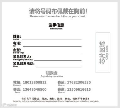 (1)请参赛选手在赛前如实填写完整号码布背面信息;