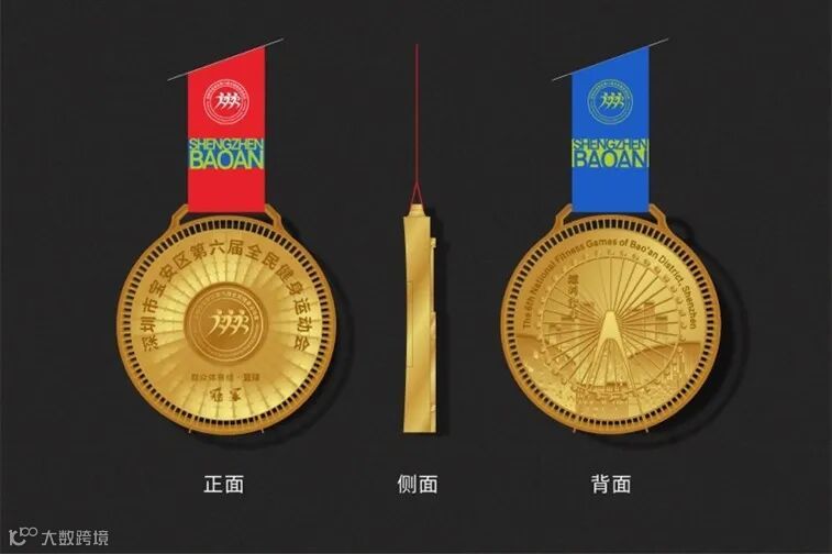 为增加比赛仪式感,提高参赛者参赛积极性,本次组委会特别设计了赛事的奖牌。在奖牌中融入深圳宝安区标志性建筑 —— 湾区之光摩天轮以及城市中耸立的高楼大厦,同时也融入了深圳宝安体育场独特的“竹林”外观设计,既有节节攀高的寓意,也希望奖牌也能成为各位宝安区运动爱好者在运动之路上光辉一笔。