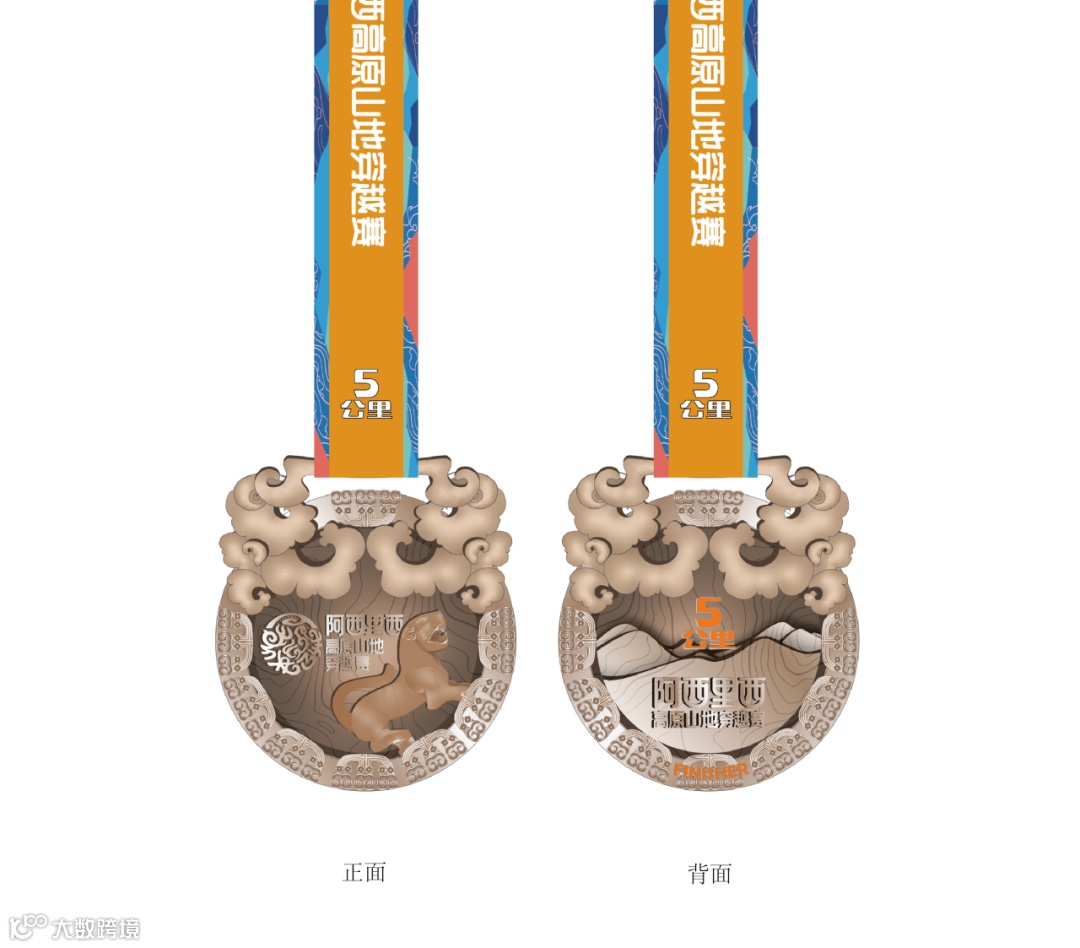 奖牌背面则展现了阿西里西的秀美山川剪影,寓意为:阿西里西就在这里,在云穿雾绕中等待向山而行的奔跑者,去探索发现它的美。