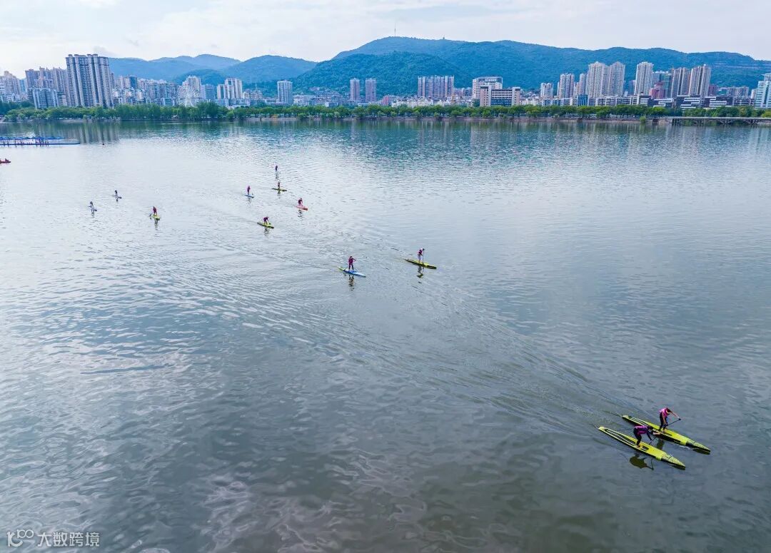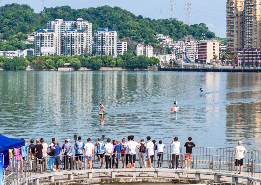 此次比赛不仅是一场竞技之旅,更是一场视觉盛宴。在风景如画,碧波荡漾的磁湖水上,参赛选手们纷纷挥桨、劈波斩浪。在激情与速度、耐力与平衡性的热烈碰撞中,参赛选手们在湖面上激起一朵朵飞扬的水花,众多现场观众为参赛选手们进行呐喊助威、鼓劲加油,将比赛气氛一次次推向高潮。